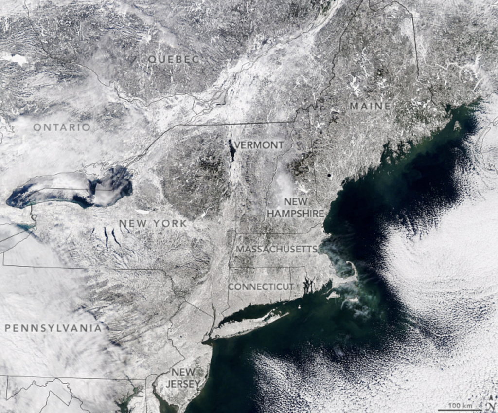 Andrew Janiszeski and Troy Zaremba blow up a weather balloon in a dark hotel lobby. The weather was calm last night when they drove into Plymouth, Massachusetts, but this morning a blizzard is raging outside. Snow is piling up in the hotel parking lot, wind gusts are near 70mph, and the power is out – but they have a job to do.