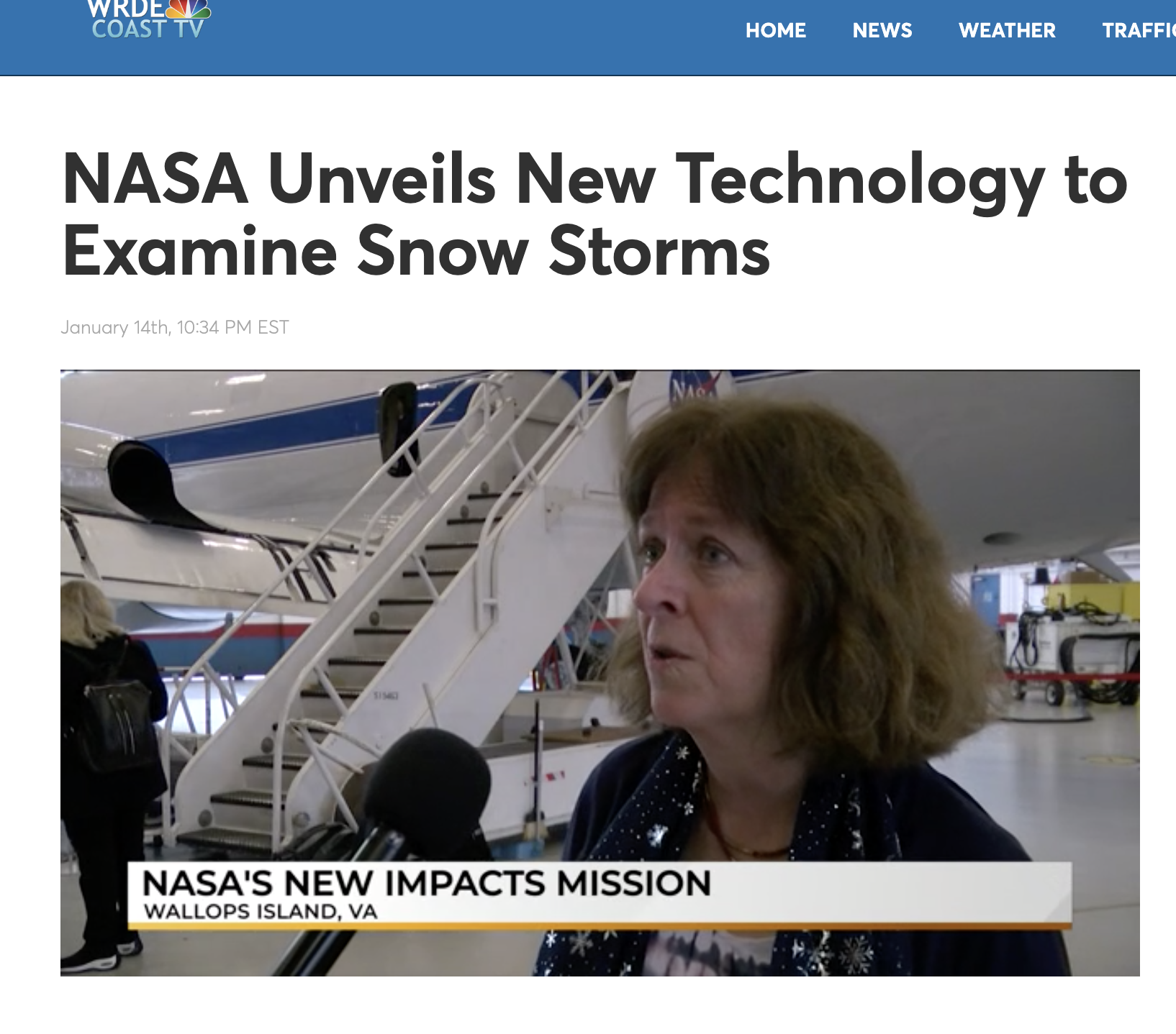 WALLOPS ISLAND, Va.- For the first time in 30 years, NASA is revamping how it looks at snow storms. On Tuesday, the agency unveiled its IMPACTS mission--a snowstorm chasing field campaign along the East Coast. NASA will be using two specialized aircraft to investigate each storm: the ER-2 high-altitude aircraft and the NASA P-3 aircraft. The latter will be housed at Wallops Island. "Studying east coast snowstorms is a big forecasting challenge so that was the challenge that was put forth in front of us," says Dr. Lynn McMurdie, a University of Washington research Associate Professor. "Another thing that's challenging is forecasting the distribution of snow, where is it going to snow heavily, where is it going to not snow as heavily.  In each individual storm it varies from storm to storm."