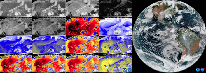 NASA Science - On September 18, 2024, the National Oceanic and Atmospheric Administration (NOAA) shared the first images of the Western Hemisphere from the GOES-19 satellite, its newest geostationary satellite launched on June 25, 2024 onboard a Falcon Heavy rocket from NASA’s Kennedy Space Center. Previously known as GOES-U, the satellite was renamed GOES-19 upon reaching geostationary orbit on July 7, 2024. GOES-19 orbits about 35,785 km (~22,000 mi) above the equator at the same speed the Earth rotates, allowing the satellite to constantly view the same area of the planet and track weather conditions and hazards as they happen. The satellite’s Advanced Baseline Imager (ABI) instrument recently captured stunning views of Earth in 16 spectral channels. This data provides researchers information about Earth’s atmosphere, land, and ocean for short-term forecasts and tracking severe weather – see Figure. ABI data is also used for detecting and monitoring environmental hazards, such as wildfires, smoke, dust storms, volcanic eruptions, turbulence, and fog. Data from multiple ABI channels can be combined to create imagery that approximates what the human eye would see from space referred to as GeoColor