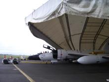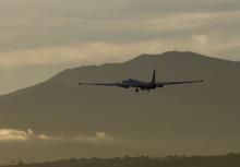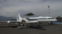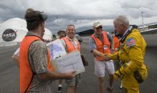 ER-2 mission manager, mobile pilot, and pilots celebrate a successful first science flight of the TC4 mission.