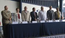 Media Day dignitaries, Dr Kurylo, Eugenia Flores, Rodrigo Arias, President Oscar Arias, Fernando Berrocal, Ambassador Mark Langdale, Pedro Leon