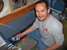 Carlos Meza working on rack installation on JSC's G-III T/N 992