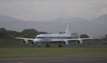 DC-8 speeds down runway at the Juan Santamaria airport during 1st science flight.