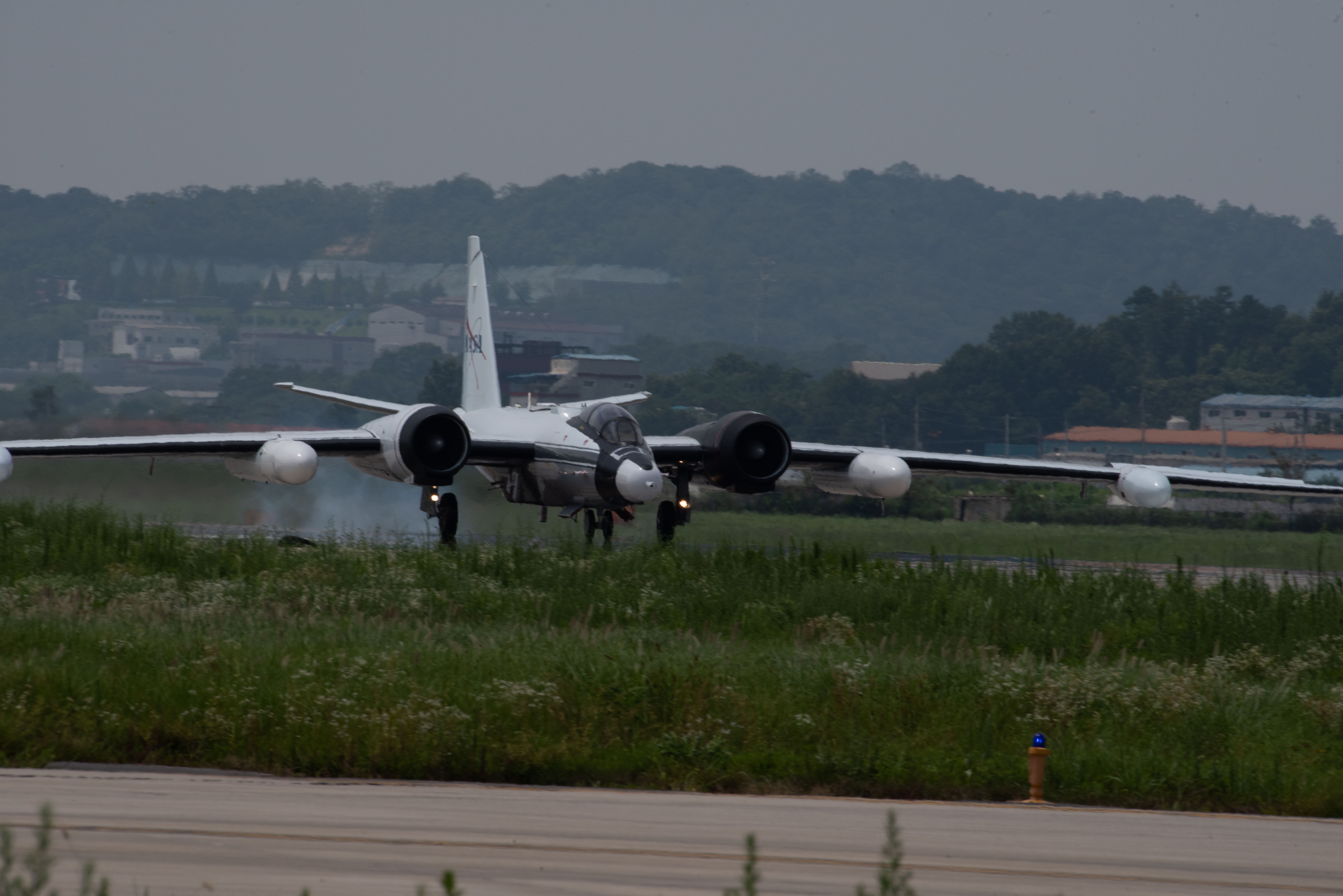 NASA WB-57 arrives at Osan Air Base on 7/27/2022. The WB-57 is one of two aircraft part of the ACCLIP campaign.