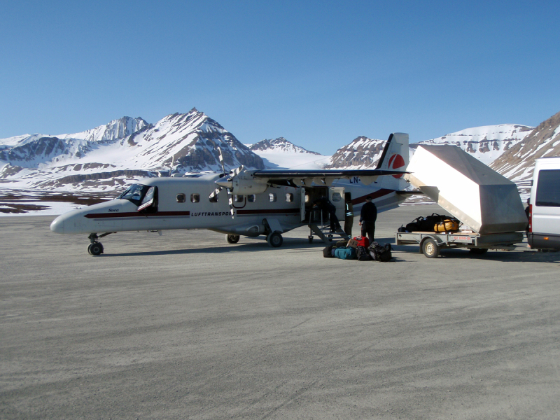 Arrival in Ny-Alesund aboard a Lufttransport Dornier 228 aircraft.