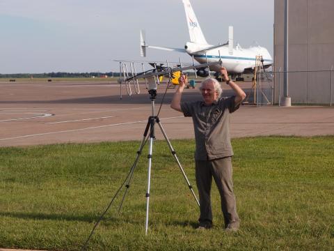 Rennie Selkirk with the balloon tracking antenna. Credits Karen Rosenlof Subject People Mission SEAC4RS
