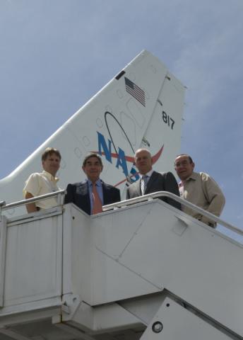 Boarding the DC-8 Rick Shetter, President Arias, Ambassador Langdale, Rodrigo Arias