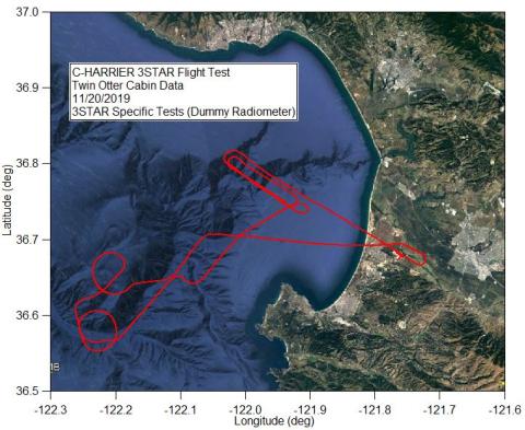 Navigation data plot for test flight to establish aircraft performance and C-HARRIER payload airworthiness with 3STAR installed.