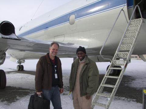 Charles Getebe and Hal Maring on the ramp in Fairbanks
