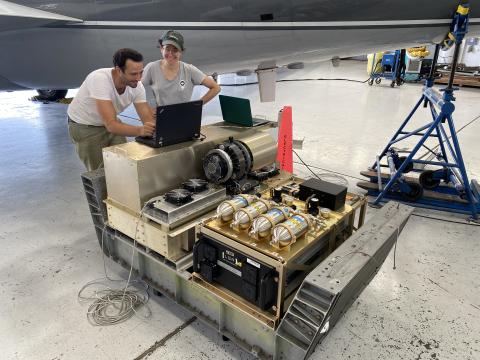 Adrien Desmoulin and Carly KleinStern work through some electrical checks on their Chi-WIS instrument.