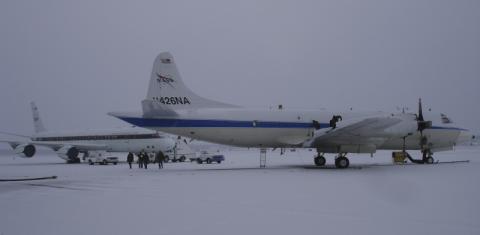 Cleaning snow off NASA P3 before science flight on April 6th.