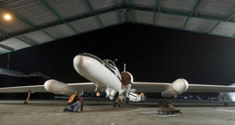 Close-up view ER-2 in Presidential Hangar prior to first early-morning flight.