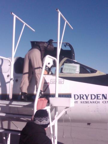 The Mobile Pilot performs the last checks before closing the canopy. Credits C. Miller Subject Aircraft Aircraft ER-2 - AFRC
