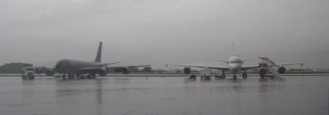 DC-8 and KC-135 in the afternoon rain.