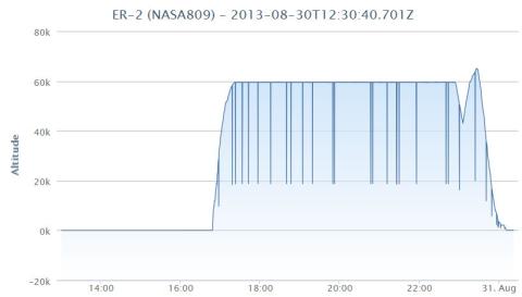 Figure2: Altitude vs time plot for science flight #8, August 30, 2013.
