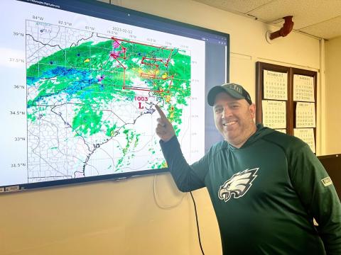 John Yorks (Deputy PI) pointing out his fantasy flight plan for Super Bowl Sunday.