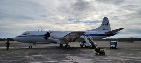 NASA P-3 Orion getting ready to depart Wallops to avoid the storm that the aircraft is going to fly into the next day.