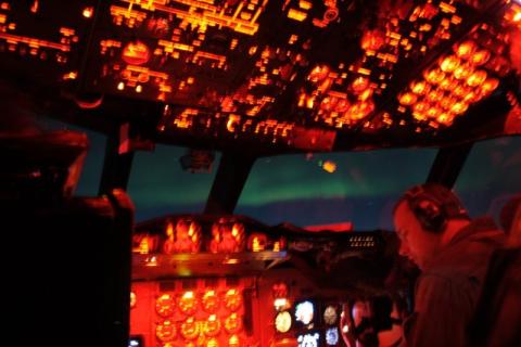 NASA P-3 cockpit with Matthew Elder and Aurora in the background