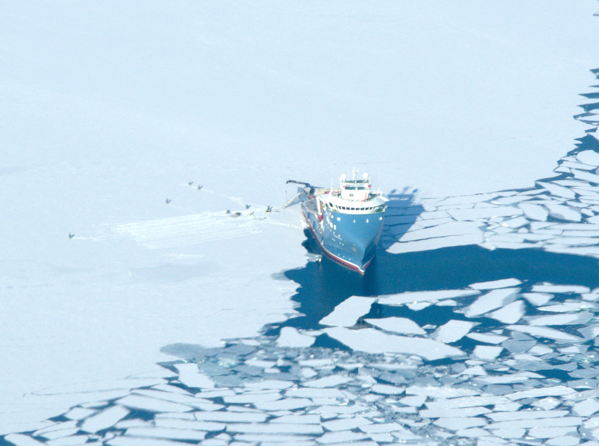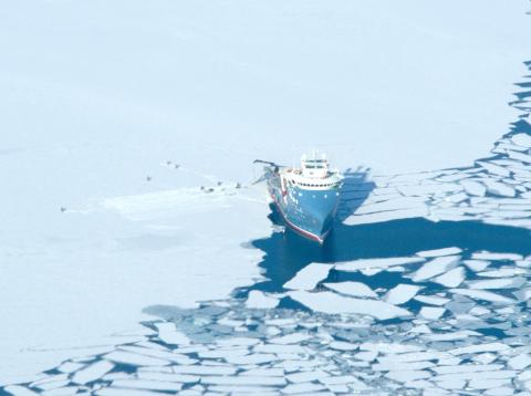 Norwegian research vessel Polar-Syssel, at work in Longyearbyen's main fjord during our departure this morning. Credits NASA/John Woods Subject Other Mission OIB