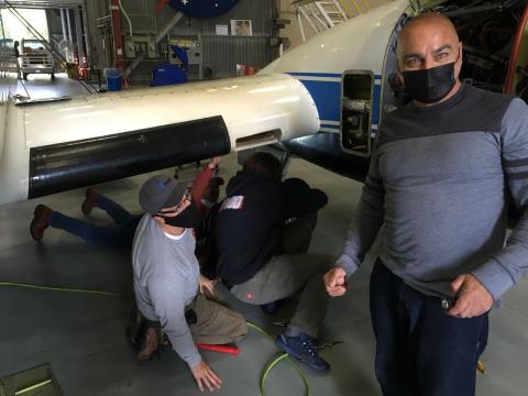 Sam Habbal and the AFRC/ARC ground crew repairing the AFRC B200