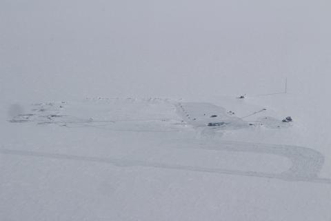 Summit Station, Greenland, from the NASA C-130, 1500 ft above. The facility's skiway and aircraft parking apron are in the foreground. Credits NASA/John Sonntag Subject Other Mission OIB