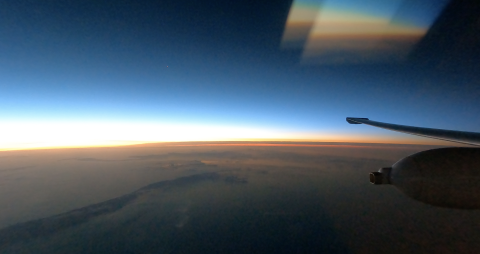 First light of day, ER-2 perspective (view of HWV instrument inlet). Subject Aircraft Aircraft ER-2 #806 Mission DCOTSS