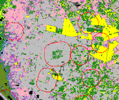 Portion of Mexico Study Area with 1 km Buffers