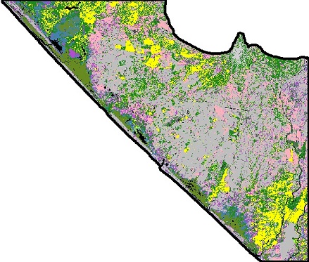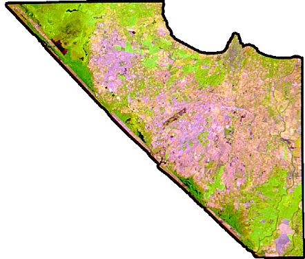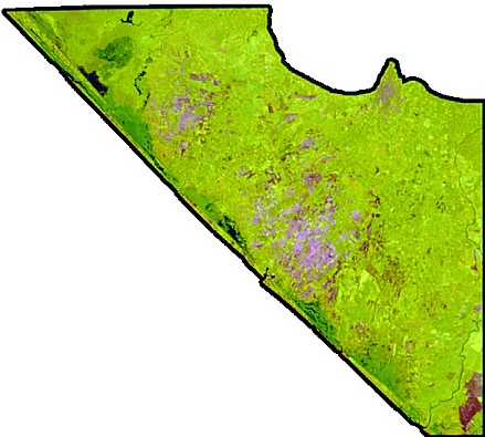 TM image (bands 5,4,7) of Mexico Coastal Plain from March 1992. In the