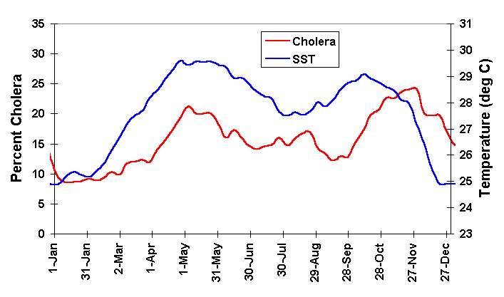 Cholera case data in Bangladesh followed sea surface temperatures (SST)