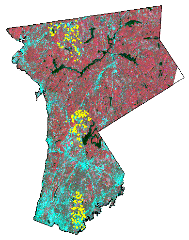 False color infrared Landsat TM image of Westchester County, New York showing