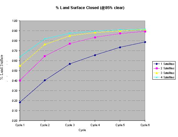 per 16 day global repeat cycle by one, two, three, and four satellites